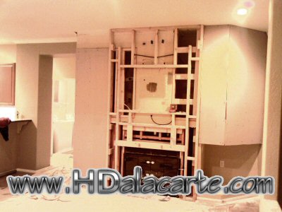 | Speaker and TV audio/video wiring | Framing up the TV niche and preparing for drywall |