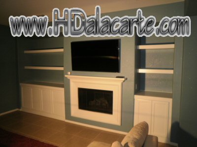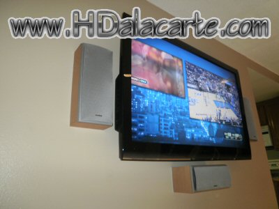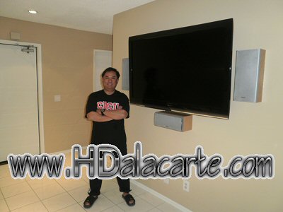 We will just reserve the space below to frame a picture of your finished home theater setup, if you allow us to publish it, as most clients do. We have had at least one really happy customer who posed for the picture right next to his newly installed TV and surround sound system front speakers mounted on the wall in his living room. We of course appreciate his kind words and patronage. The other guys wanted to charge him over two times as much money for the same job. We are glad to be of help when saving cash for the pizza and the popcorn (for the next few weekends).